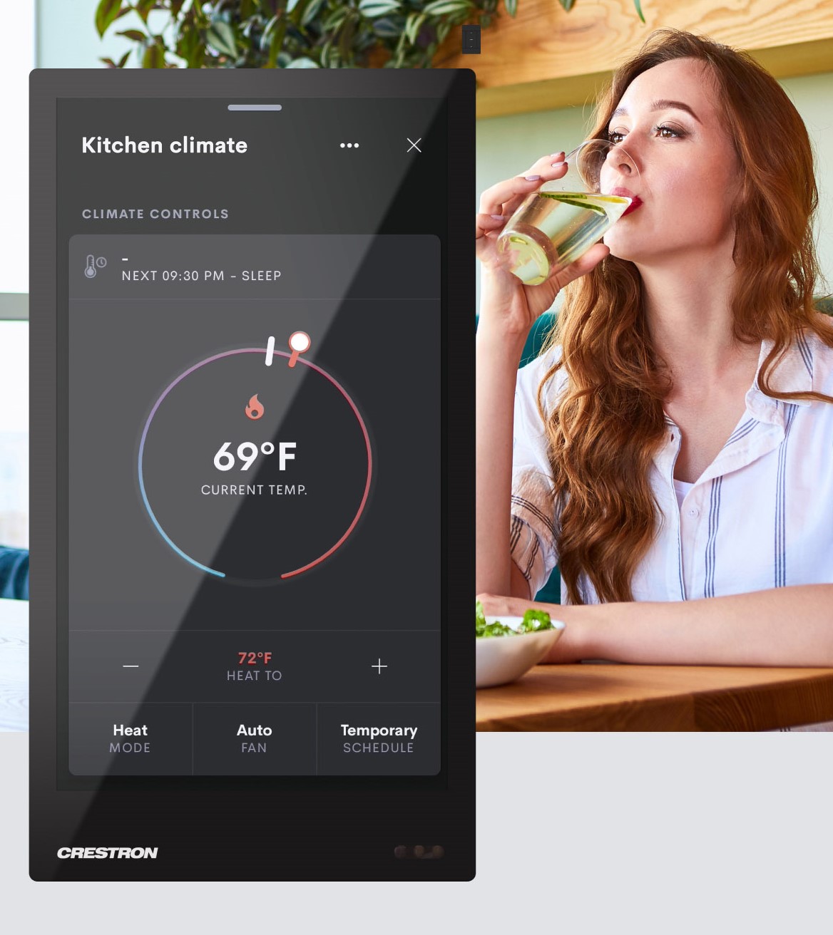 Since air quality is also vastly important to good sleep, Crestron Home will direct your state-of-the-art air purification system to activate as needed to maintain air quality at a desirable threshold.